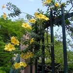 A alamanda (Allamanda cathartica) é uma trepadeira que normalmente apresenta a cor amarela vibrante, embora também seja encontrada na cor rosa-escuro. A amarela, mais comum, floresce quase o ano todo se cultivada a sol pleno.