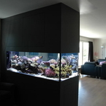 O Aquário também pode ser usado como divisão entre os ambientes, em vez de paredes. Incorporados a móveis, como mesas de centro ou estantes, podem ainda criar um efeito inesperado e de grande apelo estético no ambiente.