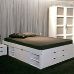 Usando uma cama com gavetas, você pode liberar um valioso espaço extra. O espaço debaixo da cama é ideal para guardar sapatos, roupas de cama, livros, etc., e essa ideia também pode ser levada para o quarto de hóspedes ou das crianças. O quarto ficará mais organizado e limpo, já que por elas serem fechadas tendem a acumular menos pó e sujeira.