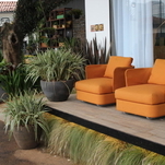 Sofás e poltronas com formas arredondas estão com tudo. Em alguns espaços, a modernidade viajou no tempo e trouxe de volta o estilo retrô, com móveis vintage lembrando os anos 50 e 60, alguns trazendo, inclusive, os famosos “pés palito”.