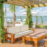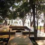 A área externa possui quadras esportivas, lounges na praia, espreguiçadeiras à beira da represa Jurumirim - que são um convite à contemplação da bela paisagem natural -, exuberante paisagismo e um deck que integra todo o complexo: o restaurante, a piscina, a praia e o novo píer. Em breve estará disponível para uso um espaço com sofás e fogo de chão, inspirado no conceito de lounge – ótima opção para bater papo com os amigos, ler e relaxar.