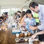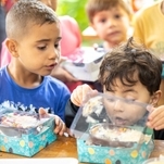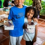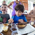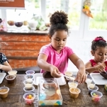 Elas foram divididas em turmas de acordo com a idade e tiveram a oportunidade de rechear o seu próprio ovo de colher.