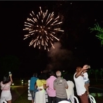 O cenário tropical, composto de arranjos de flores e frutas, ganhou o colorido das luzes na decoração e dos fogos no céu à meia-noite, enquanto na pista as pessoas estouravam champanhe para celebrar.